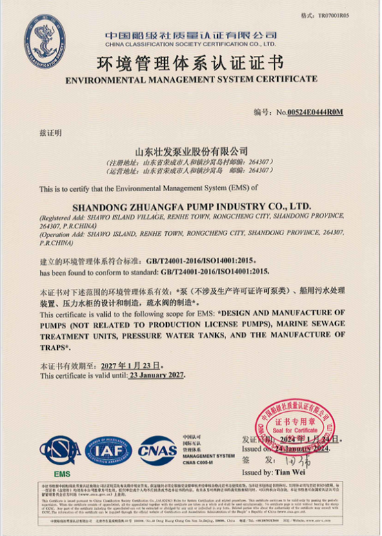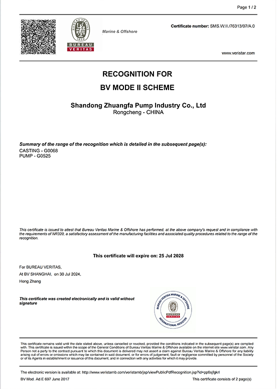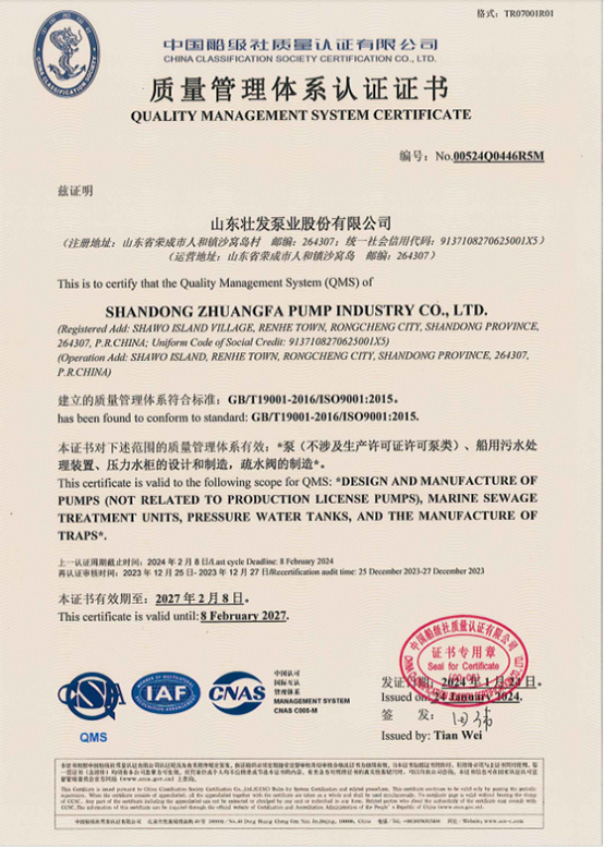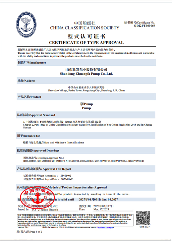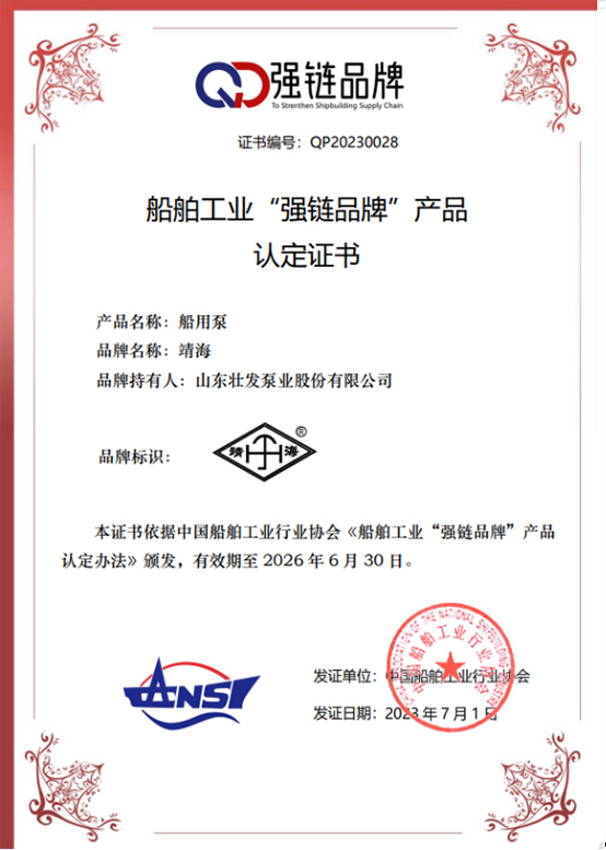 Shandong Zhuangfa Pump Industry Co., Ltd. is a comprehensive enterprise integrating the design, research and development, manufacturing, testing, marketing and service of marine pumps and other marine products. It is a council member of the Shandong Provincial Shipbuilding Industry Association and the Shandong Provincial Fishing Vessel and Fishing Machinery Industry Association, and owns the registered trademark "Jinghai". It has won numerous honors, including "High-tech Enterprise", "One Enterprise, One Technological Innovation Enterprise", "Model Workers' Home" of Weihai City, and "Civilized Unit" and "Integrity Demonstration Unit" of Rongcheng City. In 2016, it successfully listed on the Shandong Qilu Equity Exchange.